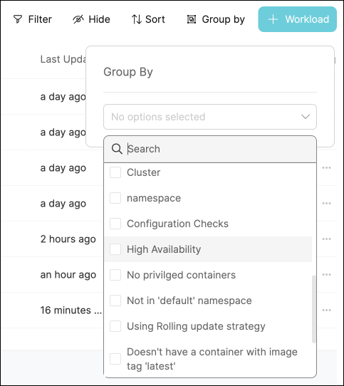 Customize your views to display the data that matters to you, grouped or filtered by teams, namespaces, or any other criteria.